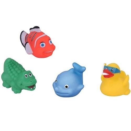 Gumowe piszczki do kąpieli. Zestaw zawiera cztery kolorowe zwierzątka, które dziecko polubi od pierwszej chwili. Zabawa nie tylko w wodzie. Gumowe zwierzątka sprawdzą się podczas ząbkowania, nauki chwytania i ściskania. Zwierzątko piszczy podczas ściskania.