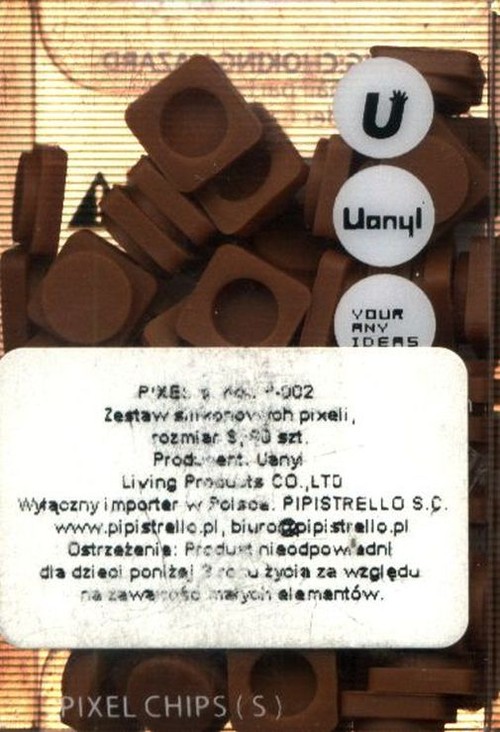 Zestaw 60 silikonowych pikseli , którymi możesz ozdabiać wszystkie przedmioty z serii UPixelbags klockami w rozmiarze S . Dodatkowe elementy pozwolą na stworzenie wymarzonego wzoru na dowolnym produkcie. Piksele bardzo dobrze trzymają się powierzchni, przez co są odporne na codzienne użytkowanie Piksele dostępne są w różnych wariantach kolorystycznych Kolor : brązowe . Rozmiar S