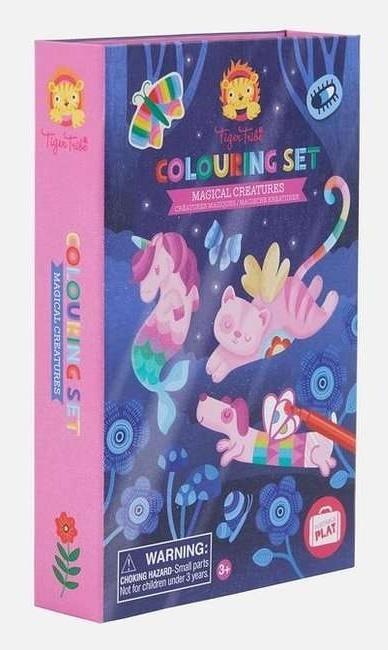 Zestaw kreatywny marki Tiger Tribe to doskonały sposób na nudę! Piękne wizerunki magicznych postaci zachęcą dziecko do kolorowania, przez co będzie ćwiczyło motorykę małą. Zabawka zawiera 36 obrazków, 5 arkuszy naklejek i 10 flamastrów. Zestaw ten stanie się wspaniałym towarzyszem podróży dzięki wygodnemu opakowaniu. Tiger Tribe to marka pełna pomysłowych kreatywnych zestawów idealnych na podróż. Wszystkie pakowane są w solidne pudełka, które nie zajmują dużo miejsca i zwykle są zamykane na magnes. Ich zawartość np. notesiki są trwale przymocowane w środku opakowania, a naklejki, kredki itp. mają swoje miejsce w wewnętrznym pudełeczku.