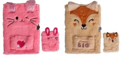 Zestaw pluszowych notesów A5 (z kłódką) i A7 królik / lisek
