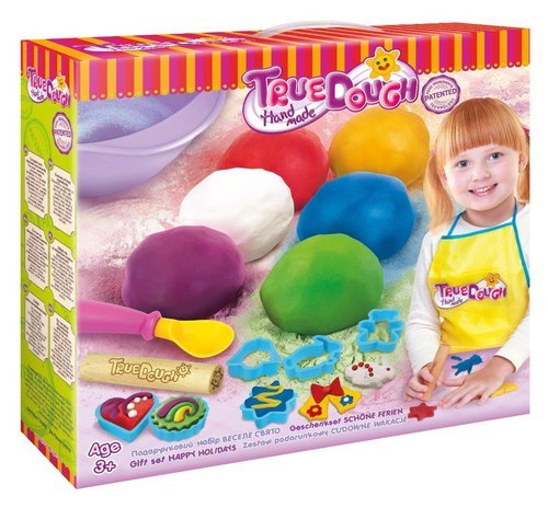 Ręcznie robiona kolorowa masa, składająca się z naturalnych składników organicznych. Zawartość: - 6 torebek z kolorową mieszanką (6x80g) - Łyżka z miarką - Miseczka z pokrywką - 6 foremek do ciasta - Drewniany wałek - Markowy fartuszek Kolory: - Ciemny Niebieski - Ognista Czerwień - Śnieżna Biel - Liliowy Fiolet - Limonkowa Zieleń - Żółty Melon