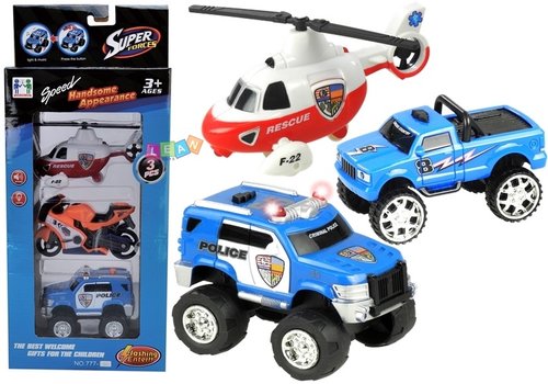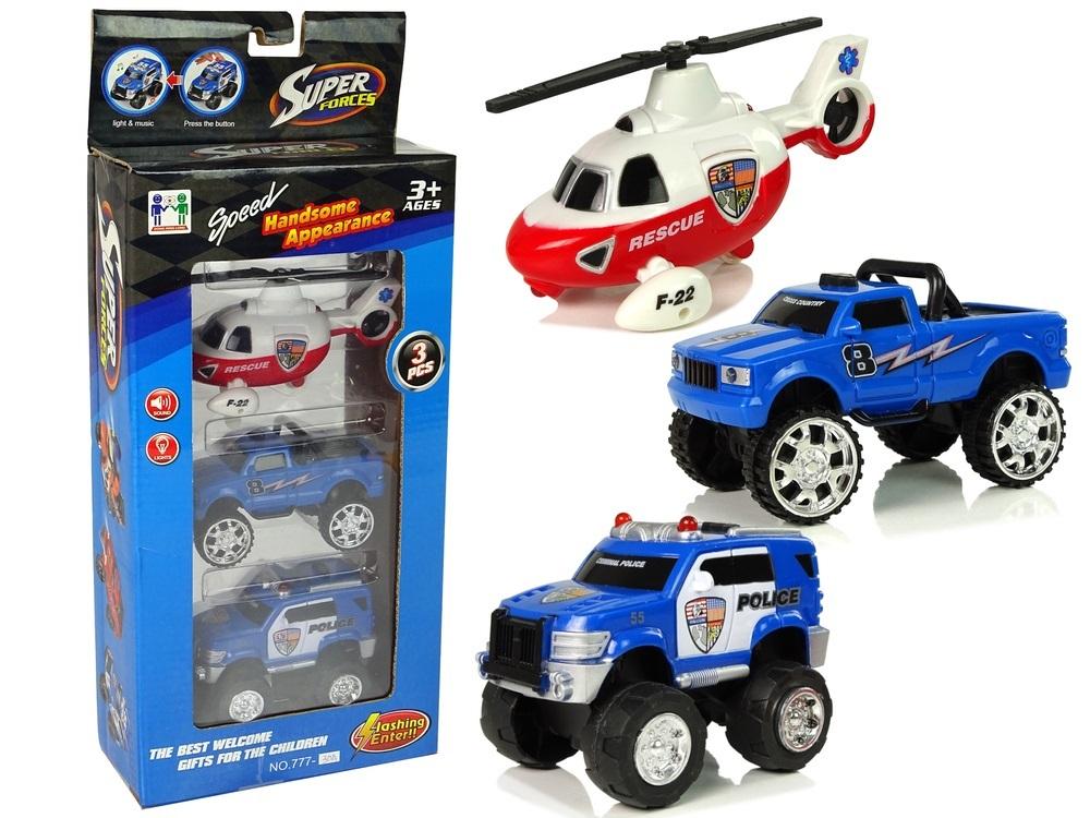 Zestaw Pojazdów Policja Helikopter Straż Monster