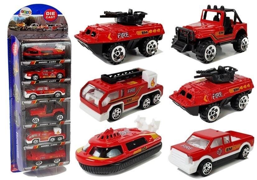 Zestaw Pojazdów Straży Pożarnej Resoraki 1:64 6 Sztuk Zestaw został stworzony dla miłośników straży pożarnej. Każdy kilkuletni chłopiec marzy o tym by zostać strażakiem, te pojazdy umożliwią mu dojazd na każdą akcję. Autka zostały wykonane w skali 1: 64. Wszystkie są idealnie odwzorowane w intensywnym czerwonym kolorze z naklejkami straży pożarnej. Rodzaje autek pokazują, że ich realne odpowiedniki mogą jeździć po każdym terenie czy to błoto, czy woda. W zestawie znajduje się 6 pojazdów w tym motorówka, wóz strażacki, jeep. Wiele rodzajów pojazdów i wiele możliwości. Mnogość wariantów zabaw z wykorzystaniem zestawu małych samochodzików z pewnością sprawi, że wyobraźnia Twoje dziecka się rozbudzi. Karoseria i spód zabawki wykonana jest z plastiku. Wymiary autek: około 7 cm x 4 cm x 4 cm Wymiary opakowania: 36,5 cm x 11,5 cm x 5 cm Zestaw pojazdów przeznaczona jest dla dzieci powyżej 3. roku życia. Zestaw posiada certyfikat CE i jest zgodny z normą EN 71. Samochody zapakowane są w kartonik z przezroczystą witrynką, dzięki czemu idealnie nadają się na prezent.