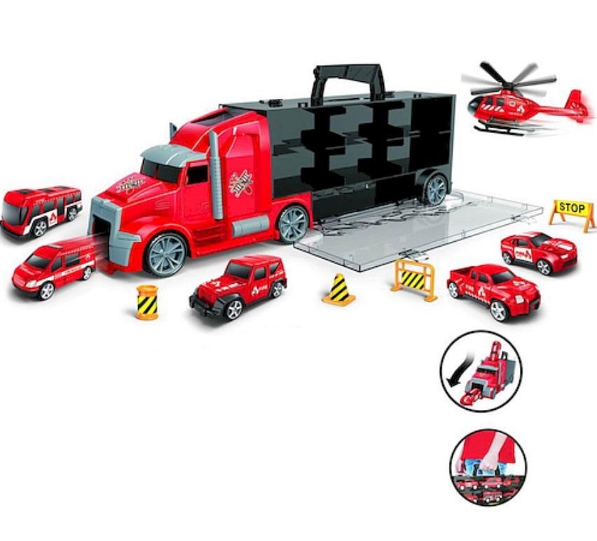 Każde auto posiada w walizce osobną przegrodę a kabina ciężarówki może służyć jako wygodny wyjazd by ruszyć do zabawy.