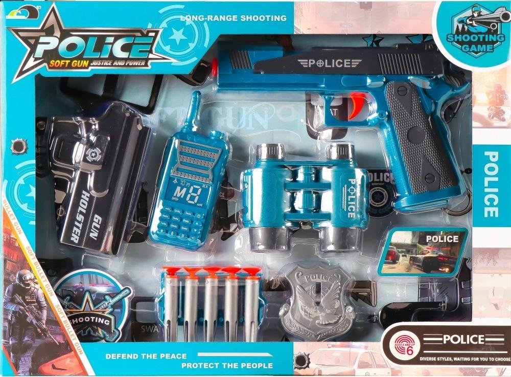 Zalety produktu: rozbudza kreatywność dziecka. Czas przygotować Bazę Policyjną na ochronę przed niebezpieczeństwem. Zabawa Zestawem Policyjnym MEGA CREATIVE dostarczy każdemu dziecku sporą dawkę dobrej zabawy! Poczuje się jak prawdziwy Policjant. Zawartość zestawu: pistolet, kabura na pistolet, lornetka, odznaka, krótkofalówka, gwizdek, 5x pociski piankowe, gwizdek, kajdanki, odznaka. Całość wykonana z plastiku. Wymiary/waga/baterie: wymiary produktu (dł. x wys. x gł.) [cm]:-pistolet 20x13x3 , waga produktu bez opakowania [kg]: 0,25 kg, wymiary opakowania (dł. x wys. x gł.) [cm] 38x29x5,waga produktu w opakowaniu [kg]: 0,36 kg, nie wymaga zasilania bateriami. Zabawka przeznaczona dla dzieci w wieku: 3+.