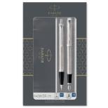 Odkryj zestaw pióra wiecznego i pasującego długopisu w klasycznym opakowaniu prezentowym Parker. Zestaw pozwala piszącemu na elastyczny wybór pomiędzy dwoma sposobami pisania, co sprawia, że będzie przemyślanym i wyrafinowanym prezentem, odpowiednim na każdą okazję.