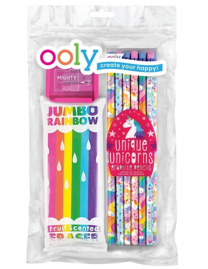 JEDNOROŻCE - Ołówki Jednorożce - Duża Gumka Pachnąca Tęcza - Temperówka Na 3 Grubości* - Rozmiar: 16.5 x 27.5 x 3 cm - Opakowanie do zawieszenia