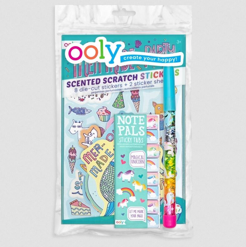 - Pachnące Naklejki Syrenki - Długopis Tęczowa Brokatowa Różdżka - Karteczki Jednorożce - Rozmiar: 16.5 x 27.5 x 2 cm - Opakowanie do zawieszenia