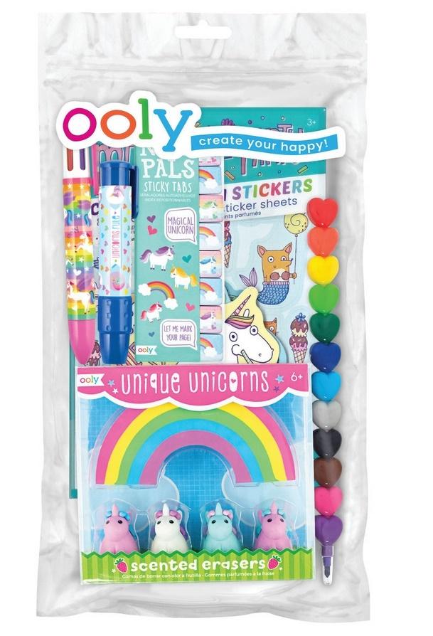 JEDNOROŻCE & SYRENKI - Kredki Serce Do Serca - Pachnące Gumki Jednorożce - Karteczki Jednorożce - Długopis 6-kolorowy Jednorożce* - Gumka Mechaniczna Jednorożce* - Pachnące Naklejki Syrenki - Rozmiar: 18.5 x 33.5 x 3 cm - Opakowanie do zawieszenia