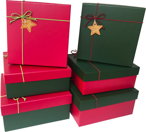 Zestaw pudełek - kwadrat rzemyk święta 3 sztuki czerwony