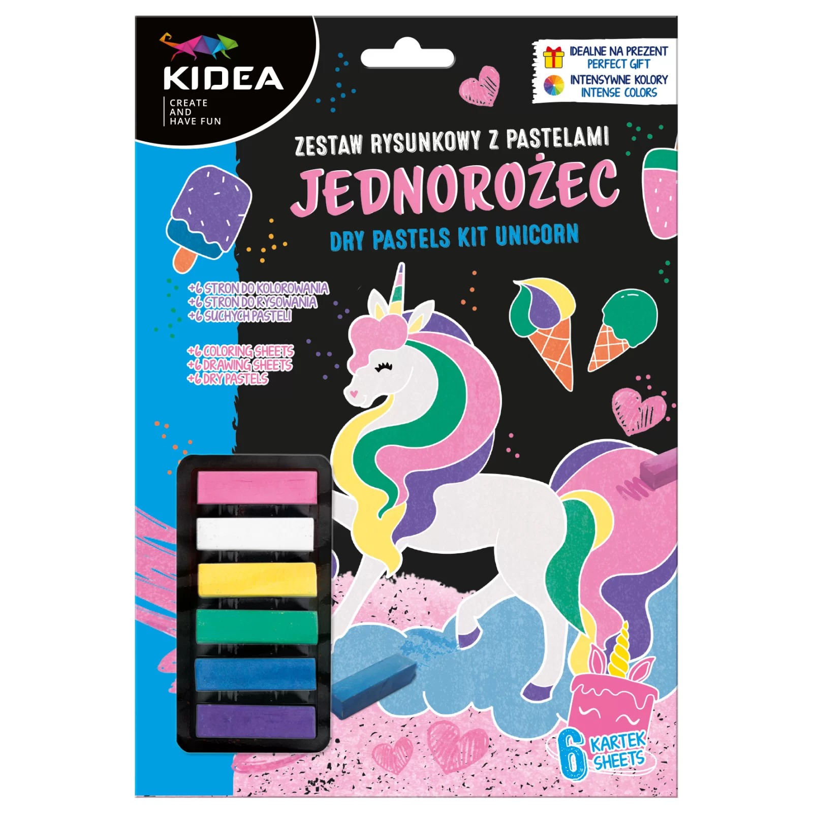 Zestaw rysunkowy z pastelami Jednorożec Kidea 6 kolorów