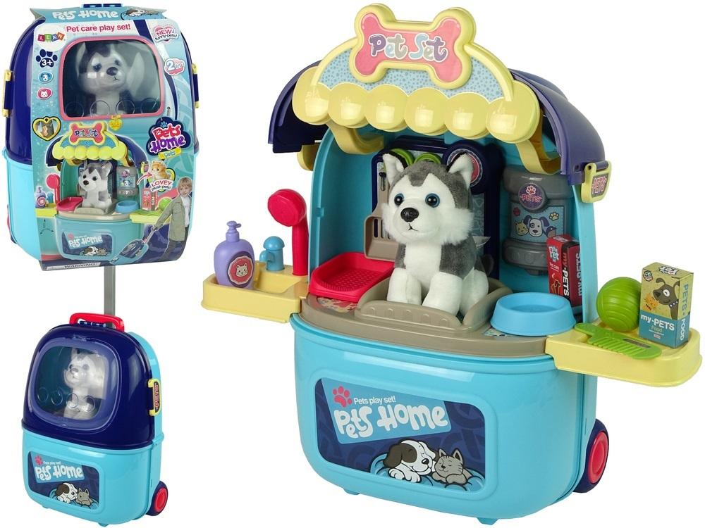 Maluch, dzięki wszystkim akcesoriom może przygotować swojego zwierzaka na wyjście. Szampon i miejsce na prysznic pozwoli na cudowną, pachnącą kąpiel. Potem pieska należy dobrze wyczesać lub pociąć sierść, pazurki za pomocą nożyczek. Karma i czerwona miseczka pozwolą na nakarmienie swojego przyjaciela.