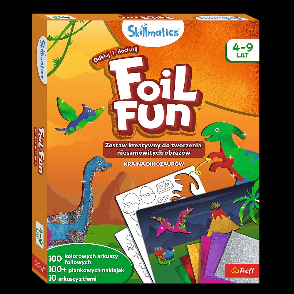 Seria Foil Fun to zestawy kreatywne, które pozwalają dzieciom ozdabiać obrazki bez użycia kleju i farb, co oznacza brak brudzenia i bałaganu idealne zarówno do domu, jak i w podróży! Przy użyciu foliowych arkuszy i piankowych naklejek dzieci mogą tworzyć połyskujące dzieła sztuki w prosty i angażujący sposób.