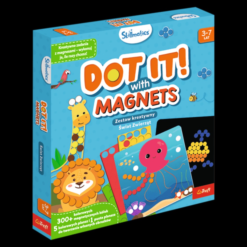 Dot It! With Magnets to seria kreatywnych zestawów z magnesami do wielokrotnego użytku, które zapewnią Twojemu dziecku niesamowitą zabawę zarówno w domu, jak i w podróży bez kleju, brudu i bałaganu.