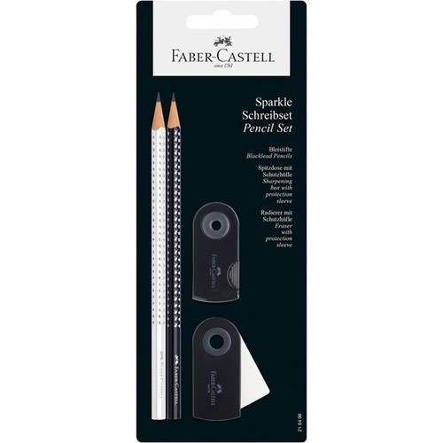 Zestawyołówków Sparkle na kartach blistrowych z temperówkami i gumkami do ścierania Sleeve opakowanie blistrowe, 4 elementy, biały/czarny