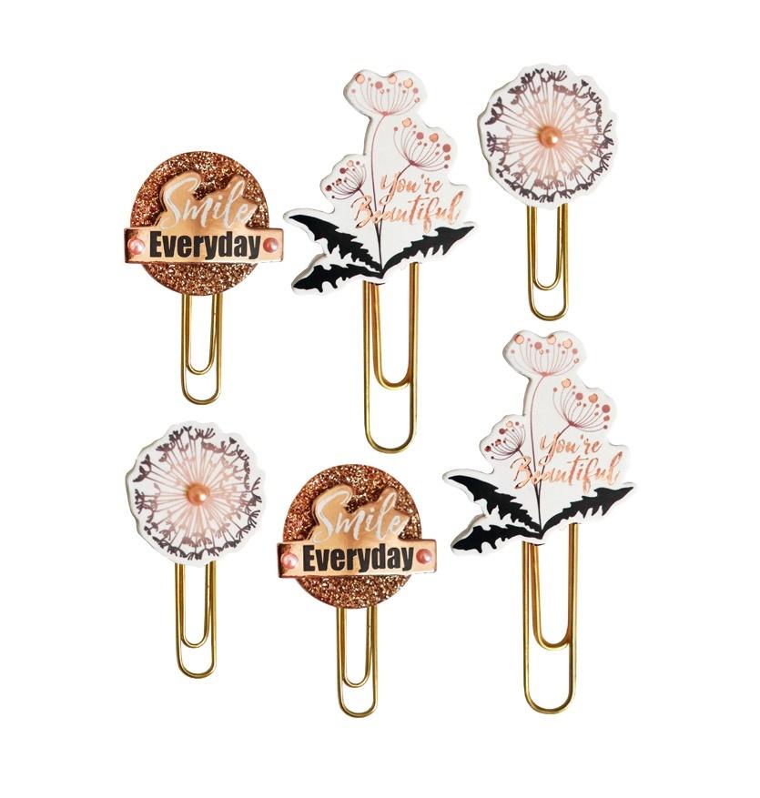 Zestaw 6 spinaczy w trzech różnych wzorach.