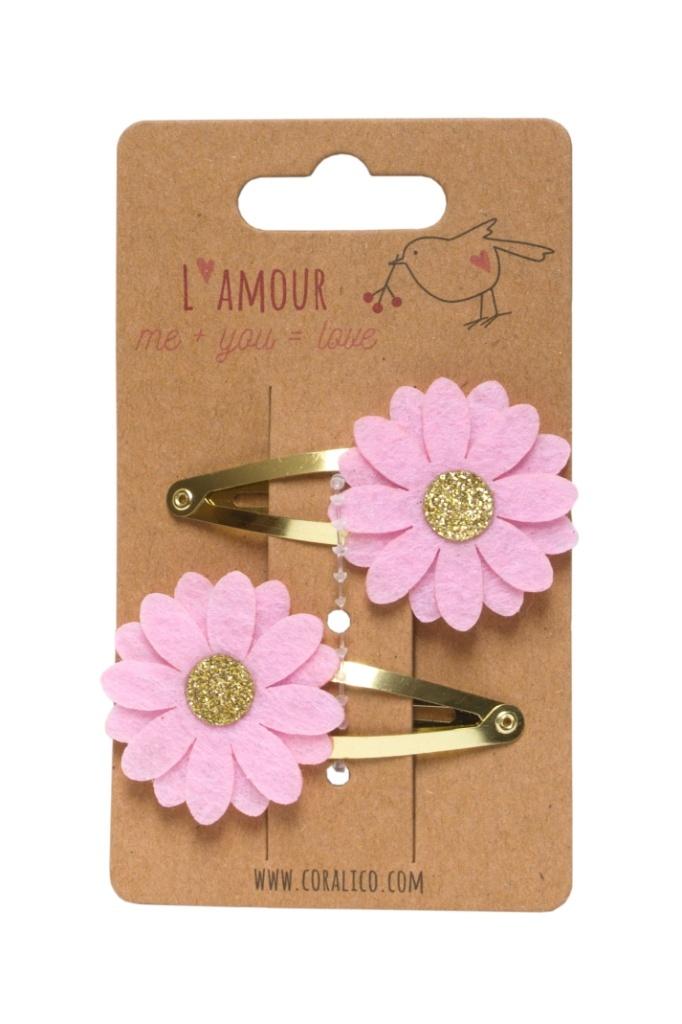 Zestaw spinek z kwiatkami. Odcienie różu i złota