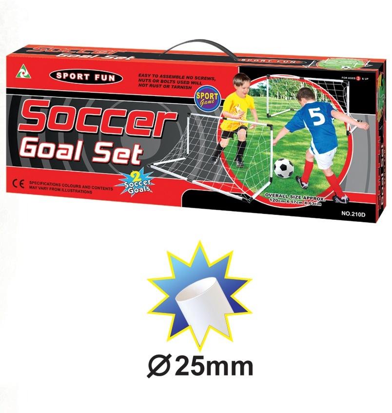 Zestaw do gry w piłkę nożną świetnie sprawdzi się w ogrodzie, parku, na boisku sportowym. Sportowe bramki to fajny pomysł na prezent dla młodego kibica i fana piłki nożnej. Bramki piłkarskie - z plastikową ramą o wymiarach 120 x 57 x 63 cm. Prosty i szybki montaż, tak by rozpocząć grę jak najszybciej. W komplecie z siatką. Bramki zapewnią młodym piłkarzom świetną zabawę, która rozwija u dzieci wytrzymałość, szybkość, siłę oraz koordynację ruchową. Gra w piłkę uczy pracy w grupie, umiejętności podporządkowania się regułom gry, poczucia bycia członkiem zespołu, współdziałania z innymi w rozwiązywaniu wspólnych zadań, stosowania się do zasad ""fair play"" w życiu i sporcie i poszanowania przeciwnika. Zabawka posiada certyfikat CE.