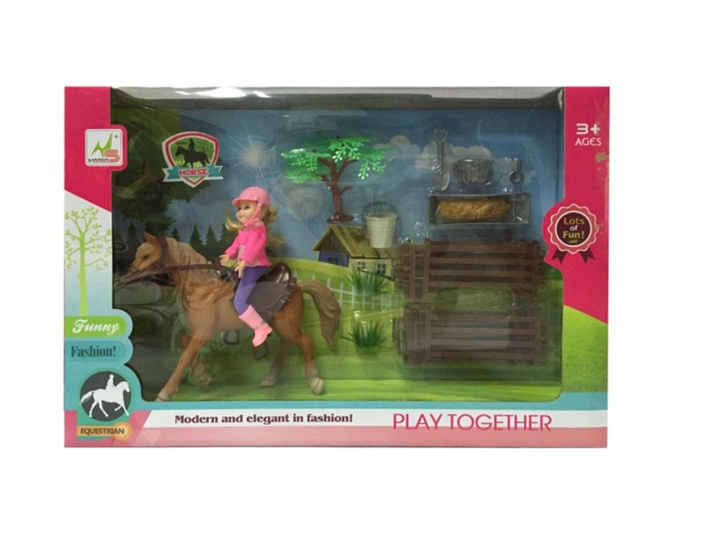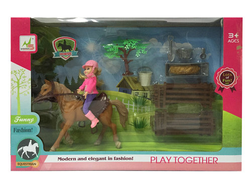 Zawartość zestawu: figurka konia lalka dziewczynka roślinki plastikowe elementy płotków do złożenia akcesoria Wiek 3+