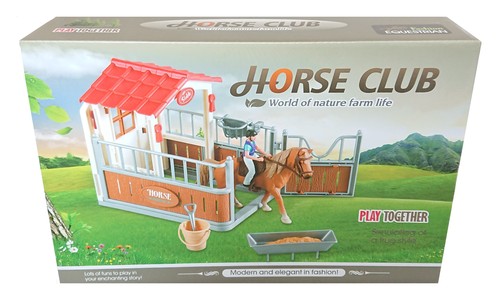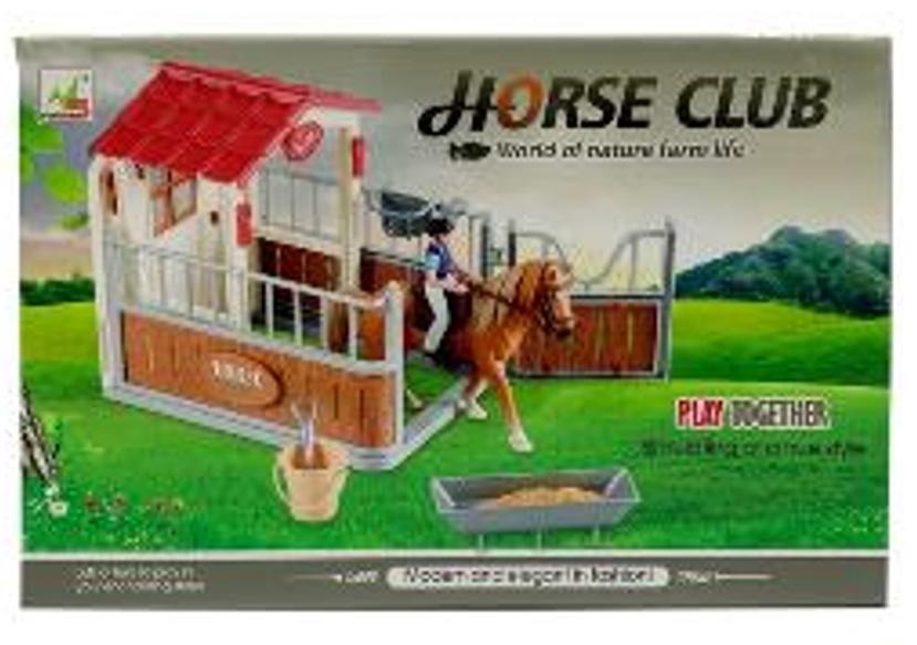 Zestaw do zabawy z figurkami. Zawiera stajnię, konia z jeźdźcem i akcesoria. Dla dzieci w wieku od 3 lat