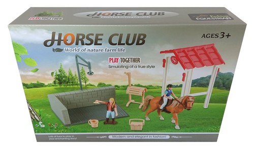Duży zestaw do zabawy z figurkami. Zawiera mini stajnię, koński prysznic, figurki konia z jeźdźcem oraz opiekuna i akceroria Dla dzieci w wieku od 3 lat