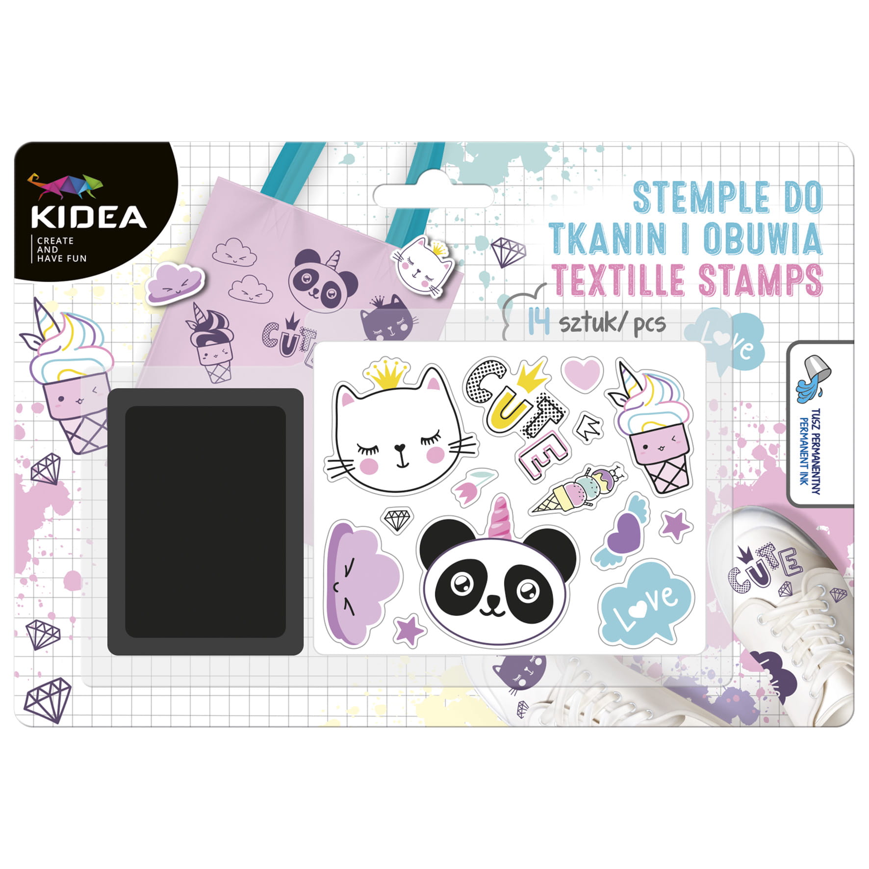 Zestaw stempli do dekoracji tkanin i obuwia z tuszem permanentnym od Kidea.