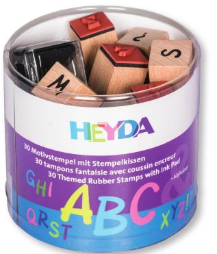 Zestaw stempli affabet. 1 opakowanie zawiera 30 stempli (alfabet plus stempel wykrzyknik, pytajnik, dwukropek)