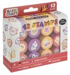Zestaw 12 sztuk pieczątek samotuszujących. Dostępne 2 warianty z wzorami zwierzątek lub słodkimi wzorami dla dziewczynek. Zabawka niezbędna w rozwijaniu wyobraźni i zdolności plastycznych, ponieważ ze stempelków można stworzyć kolarze kolorowych symboli. Przeznaczona dla dzieci już od 3 roku życia.