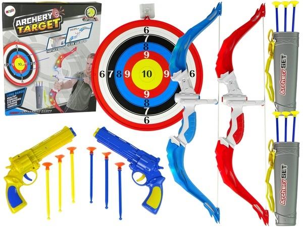Zestaw Strzelecki Dwa Łuki Tarcza Strzały Pistolety Kołczan