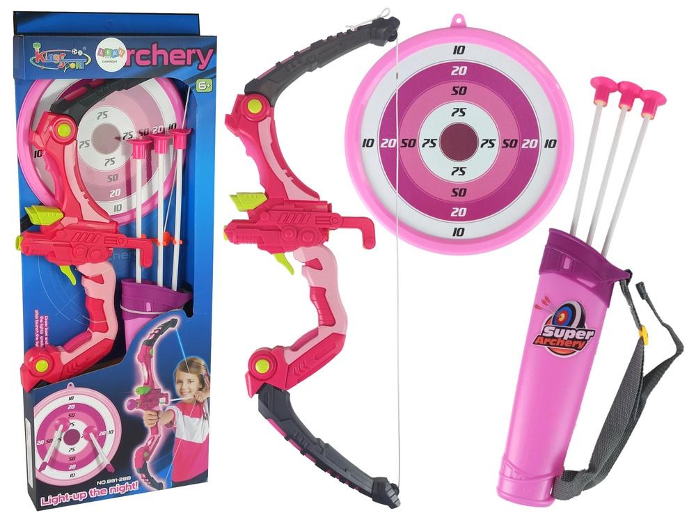 Zestaw Strzelecki Łuk Tarcza Strzały Przyssawki Różowy 62 cm Łucznictwo to ciekawa dziedzina sportowa dla dzieci. Łuk będzie świetną rozrywką dla dzieci, które chcą wcielić w rolę łucznika i zostać małym Robin Hoodem, bądź Indianinem. Zestaw sprawdzi się również na przebranie na bal karnawałowy bądź urodzinowy imprezę z motywem przebrań. Kolejną zaletą to pozytywny rozwój dziecka i zachęta do spędzania czasu na świeżym powietrzu. Wysiłek fizyczny nie będzie już taki zły, łącząc z zabawą, będzie budził pozytywne odczucia. Rozwinie sprawność manualną i koordynację ruchową oraz celność i refleks dziecka. Zabawkowy łuk jest idealną zabawką na wiosenne i letnie ciepłe dni, podczas których maluch może do upadłego bawić się na świeżym powietrzu. Jednak nie tylko! We wnętrzu opakowania znajduje się również tarcza stanowiąca cel do strzałów. Tarczę można zawiesić lub przyczepić do ściany, a następnie... rozpocząć zabawę. Przyssawki znajdujące się na zakończeniach strzał są bezpiecznie i z łatwością przykleją się do gładkiej powierzchni, nie pozostawiając na niej żadnych śladów. Wyglądem przypomina prawdziwe łuki, co może pozytywnie wpływać na odczucia dzieciaka, zachęcając go do świetnej zabawy. Żywe kolory i mocna konstrukcja łuku z pewnością zachęcą do podjęcia wyzwania, jakim jest trafienie w sam środek tarczy. Łuk posiada elementy świetlne, co będzie dodatkowa atrakcją. Zestaw dla małego łucznika składa się z: - łuku sportowy - 3 strzały, - futerału na strzały - tarcza Wymiary elementów zestawu: - łuk: 61 cm x 24 cm x 4 cm - strzały: 49 cm - pokrowiec na strzały: 30 cm x 11 cm x 4 cm - średnica tarczy: 22 cm Wymiary opakowania: 62 cm x 26 cm x 5,5 cm Łuk zasilany dwoma bateriami 1,5V AA, które zostały dołączone do zestawu. Zgodne z normą EN71 i certyfikatem CE. Przeznaczony dla dzieci powyżej 6 roku życia.