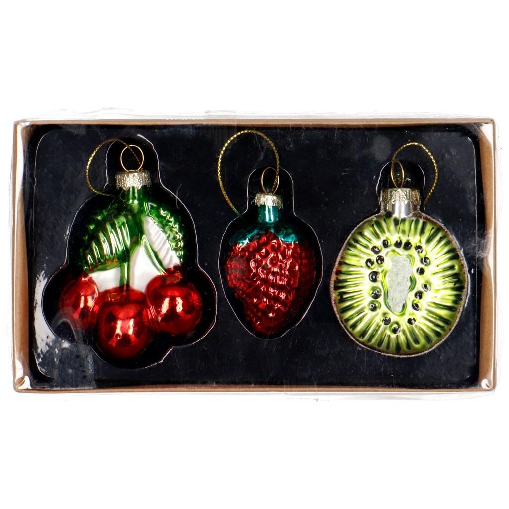 Komplet 3szt szklanych zawieszek, podełko kraft z przykrywką
