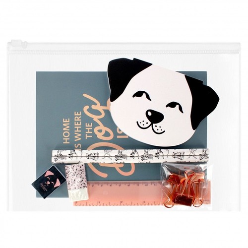 Zalety produktu: Zestaw szkolny to niezbędnik na każdym biurku. Praktyczne i podstawowe przybory jakie muszą się znaleźć na biurku każdego dziecka, Zestaw STARPAK Dog jeszcze bardziej zachęca Twoją pociechę do korzystania z niego, pakowany w przezroczysty piórnik zamykany na zamek strunowy zipp. Zawartość zestawu: piórnik przezroczysty, zeszyt A5, notesik, 2 x ołówek, gumka, temperówka, linijka, 3 x klip. Zapoznaj się również z innymi produktami z linii STARPAK.