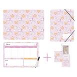 Zestaw szkolny składający się ze starannie dobranych akcesoriów, które sprawdzą się zarówno podczas zajęć plastycznych, jak i codziennego planowania nauki. W skład zestawu wchodzą: podkładka do prac plastycznych A4, teczka z gumką A4, planer magnetyczny z markerem oraz GRATIS – pionowa okładka na dokumenty ucznia. Produkty wykonane są z wytrzymałego tworzywa, które zapewnia odporność na zarysowania i długotrwałe użytkowanie. Komplet łączący funkcjonalność z atrakcyjnym designem, dostępny w 5 unikalnych wzorach do wyboru – dopasowanych do różnych gustów i stylów. Gotowe rozwiązanie, które oszczędza czas przy kompletowaniu wyprawki, a jednocześnie w pełni odpowiada na codzienne potrzeby każdego ucznia – zarówno w szkole, jak i w domu.