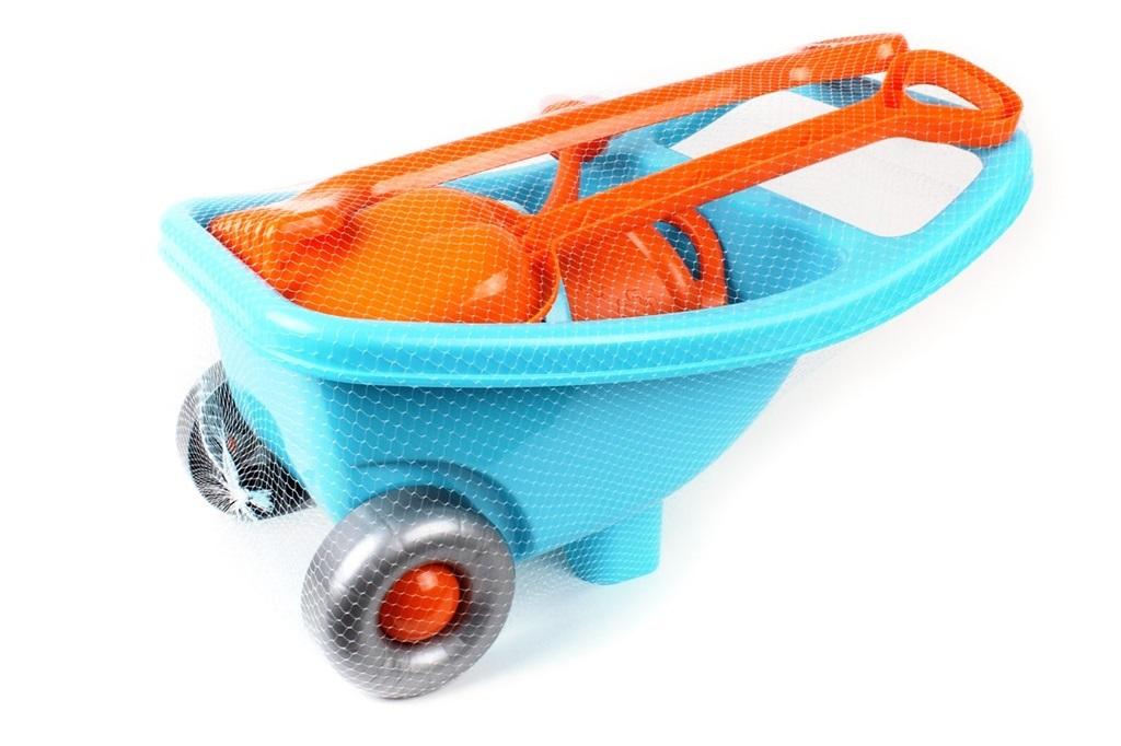 Zestaw zabawkowy taczka. Wszystkie elementy zestawu wykonane są z mocnego, wysokiej jakości, bezwonnego tworzywa sztucznego.