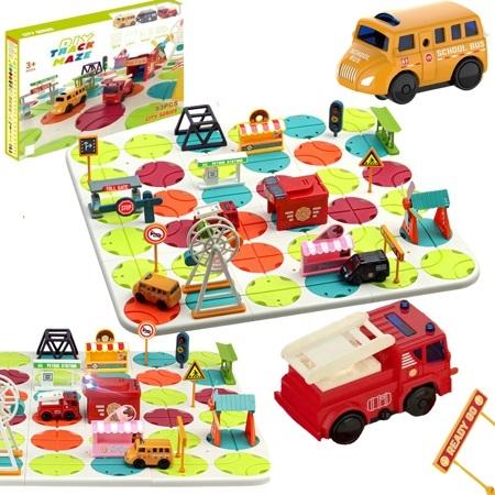 W tym zestawie dzieci konstruują własne trasy za pomocą różnorodnych klocków. Dolna płyta to podstawa całego toru. Celem gry jest poprowadzenie trzech pojazdów z punktu startowego do punktu końcowego, wykorzystując wyłącznie zbudowaną trasę. Konstrukcja drogi to wyzwania, które pobudzi logiczne myślenie i rozwijanie umiejętności rozwiązywania problemów.
