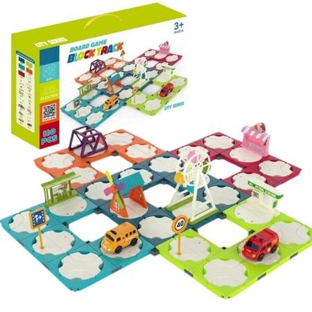 W tym zestawie dzieci konstruują własne trasy za pomocą różnorodnych klocków. Dolna płyta to podstawa całego toru. Celem gry jest ułożenie torów tak, aby pojazd mógł bez problemu objechać ułożoną trasę. Dzięki uniwersalności klocków, dzieci mogą układać tory według własnego pomysłu. Konstrukcja drogi to wyzwania, które pobudzi logiczne myślenie i rozwijanie umiejętności rozwiązywania problemów. Różnorodne akcesoria, takie jak mosty, przystanek czy znaki drogowe urozmaicają trasę i sprawiają, że zabawa jest jeszcze bardziej atrakcyjna.