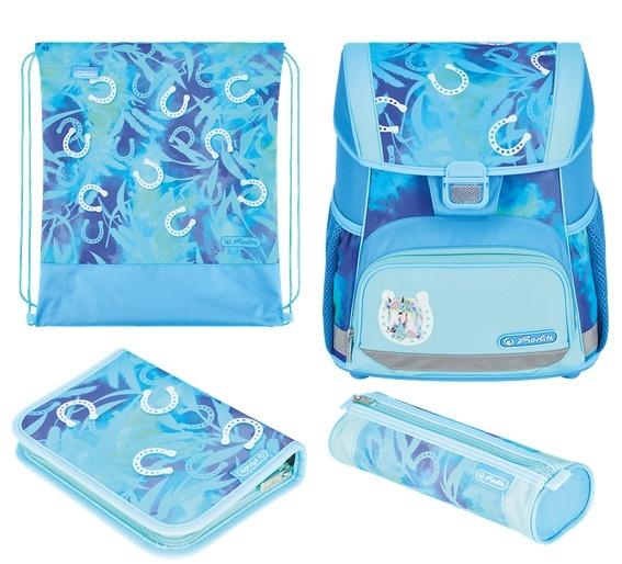 W zestawie tornister, worek na buty, piórnik rozkładany i piórnik tuba