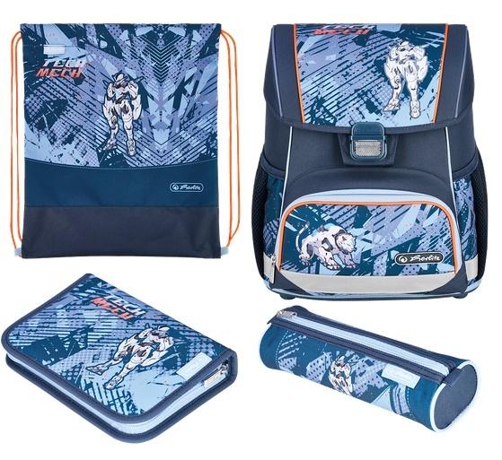 W zestawie tornister, worek na buty, piórnik rozkładany i piórnik tuba
