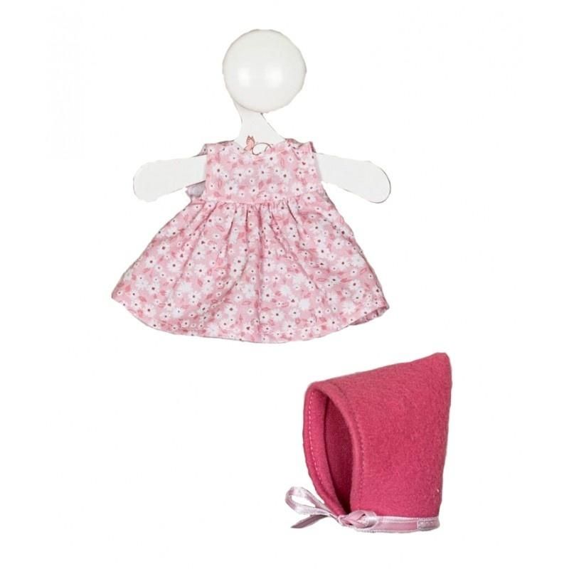 Różowa sukienka to kolejny dodatek pasujący na lalki z serii ASI Bomboncin o wysokości 20 cm. Zestaw uzupełnia garderobę ulubionej lali. Komplet zawiera sukienkę na szerokich ramiączkach zapinaną z tyłu na rzep. Odcinana w talii kreacja została ozdobiona printem w stokrotki. Dopełnieniem kompletu ubraniowego jest wiązana czapeczka wykonana z polaru. Idealnie skomponowany zestaw przyda się w szafie niejednej miłośniczce lal. Letnia kreacja doskonale sprawdzi się na spacer czy wyjazd wakacyjny. Ponadto strój wyróżnia przyjemny w dotyku materiał z którego został wykonany. Ubranko zostało zaczepione na białym plastikowym wieszaczku, który po rozpakowaniu może posłużyć w garderobie na zawieszenie innych kreacji, całość została zapakowana w foliową torebeczkę, która chroni ubranko przed zabrudzeniem. Jeśli jednak dojdzie do zabrudzenia to producent zaleca pranie ręczne.