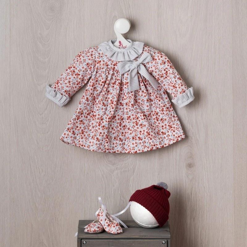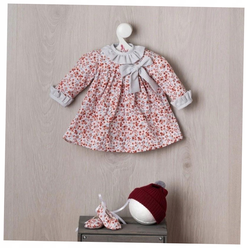 Komplet stylowych, szytych ręcznie ubranek zaprojektowano i uszyto w Hiszpanii specjalnie dla lalek z serii Pepa. W skład zestawu wchodzą: kwiecista sukienka ozdobiona kołnierzykiem, mankietami i kokardką w biało-szarą kratkę, ciepła wełniana czapka z szarym pomponem, miękkie wiązane buciki. Outfit na kartonowym wieszaczku z logo marki ASI zapakowany jest w foliowe opakowanie. Uzupełnij kolekcję ubranek lalek hiszpańskich i uatrakcyjnij dziecku zabawę! Wszystkie ubranka dla lalek marki ASI są w całości szyte w Hiszpanii.