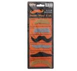 Zestaw zawiera 6 szt. wąsów mocowanych na taśmę: elegant łobuz łajdak casanova playboy bandyta.