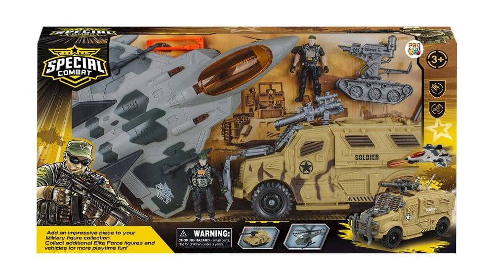 Zestaw Armia Myśliwiec i Pojazd Opancerzony to idealna propozycja dla młodych miłośników wojska i militarnych przygód. W skład zestawu wchodzi imponujący zestaw pojazdów i akcesoriów wojskowych, w tym odrzutowiec bojowy, pojazd opancerzony, figurki żołnierzy oraz różnorodne uzbrojenie. Zabawka stworzona z myślą o dzieciach powyżej 3. roku życia zachęca do kreatywnej zabawy i tworzenia własnych misji wojskowych.