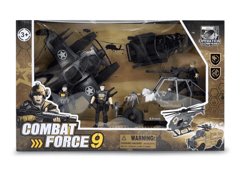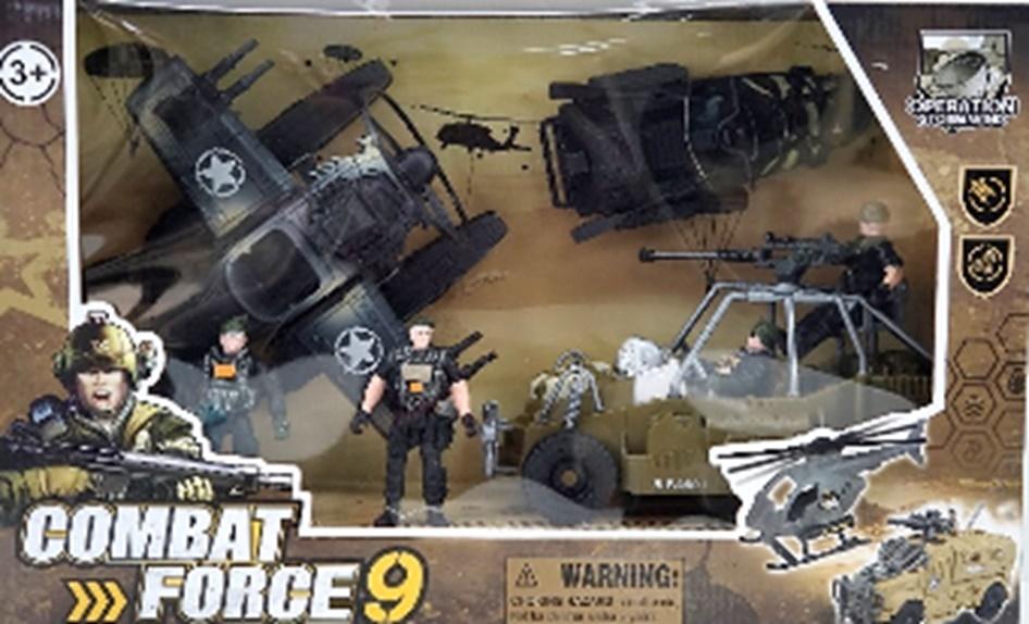 w zestawie: samolot, auto bojowe, 4 żołnierzy, skuter wodny.