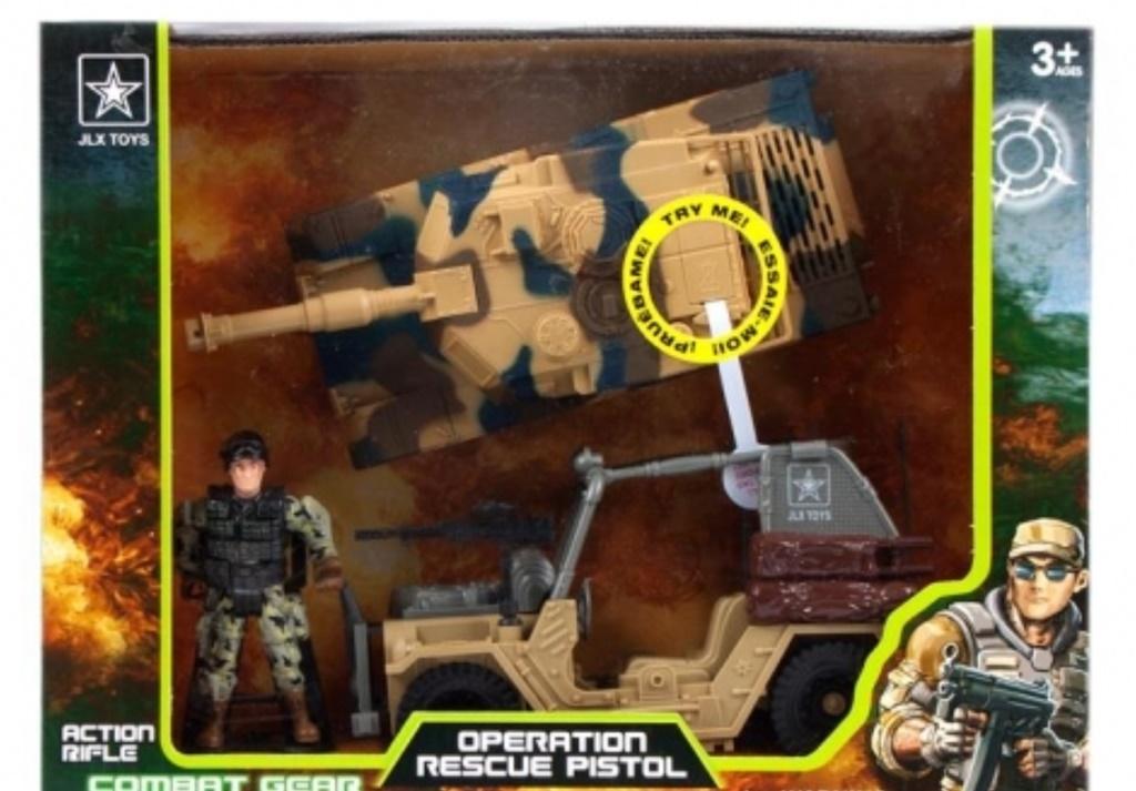 Żołnierz to równie popularny zawód wśród grupy małych dzieci, co policjant. Zabawa Zestawem Wojskowym MEGA CREATIVE dostarczy każdemu dziecku sporą dawkę dobrej zabawy i rozbudzi jego kreatywność W zestawie znajdują się Czołg, samochód Jeep wojskowy oraz figurka żołnierza. Czołg posiada efekty dźwiękowe. Wymagane zasilania bateriami 3x AG13 - załączonymi do zestawu. Produkty przeznaczone dla dzieci w wieku 3 . Wymiary opakowania dł. x wys. x gł. cm 32c26x10.