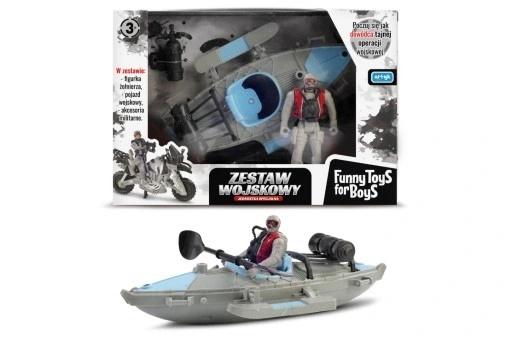 W ZESTAWIE: FIGURKA ŻOŁNIERZA OK. 11 CM., KAJAK, AKCESORIA, WYM. OPK: 24 X 17 X 7 CM., 3+