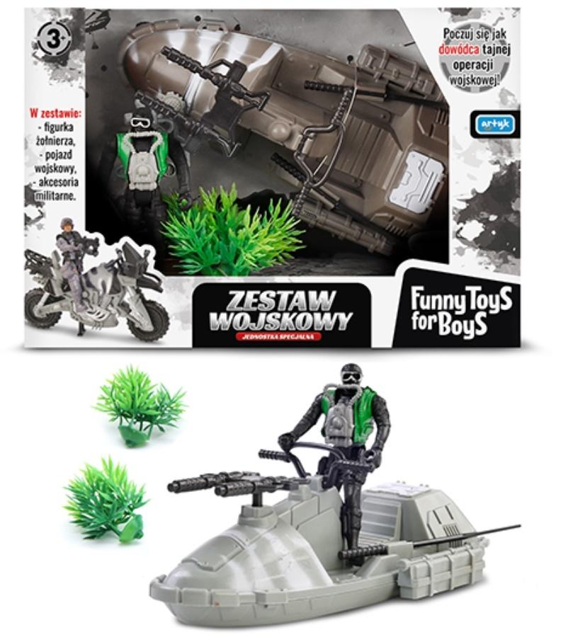 W ZESTAWIE: FIGURKA ŻOŁNIERZA OK. 11 CM., SKUTER WODNY, AKCESORIA WOJSKOWE, WYM. OPK: 24 X 17 X 7 CM., 3+