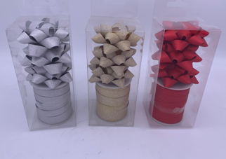Zestaw wstążka brokatowa 1cm x 10m + 3 rozetki 6cm