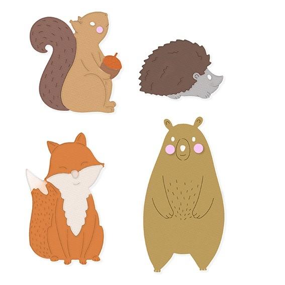 Zestaw wykrojników złożony z czterech motywów zwierzątek o różnej wielkości. W zestawie znajdują się wykrojniki z wzorem jeżyka, misia, wiewiórki oraz liska.