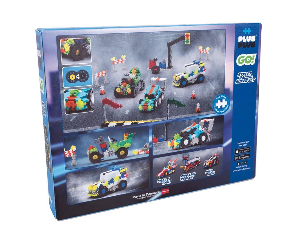 Zbuduj swój własny zestaw wyścigów ulicznych Plus-Plus z samochodami wyścigowymi i radiowozem. Stwórz własny uliczny samochód wyścigowy GT i T-Bucket, a także swój własny radiowóz. W zestawie z wieloma akcesoriami na wiele godzin budowania i zabawy. Zestaw zawiera 900 elementów, 12 odwracalnych kół, 6 dodatkowych kół i 4 podstawy podwozia. Przewodnik zawiera instrukcje krok po kroku jak budować samochody i akcesoria. Plus-plus to oryginalne klocki wyprodukowane przez duńską firmę, która bardzo wysoko stawia ekologiczny aspekt swoich produktów. Klocki nie zawierają PVC oraz ftalanów i świetnie sprawdzą się dla dzieci już od 3 roku życia. Niezwykle proste elementy dają możliwość dwóch form zabawy - budowy "na płasko" oraz tworzenia trójwymiarowych konstrukcji, które znacznie rozwijają wyobraźnię dziecka. Możliwość tworzenia różnych kombinacji zapewnia zabawę, która się nie nudzi i jest dla dziecka atrakcyjna. Inwestycja w takie klocki to świetny wybór, by rozwijać zdolności manualne, pobudzać kreatywność i doskonalić motorykę małą.