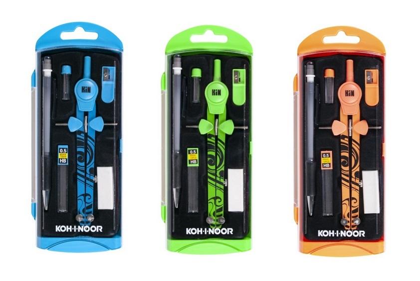 Zestaw dla dzieci w wieku szkolnym w trzech kolorach: pomarańczowym, zielonym oraz niebieskim. Doskonały do kreślenia precyzyjnych okręgów i łuków dzięki płynnej i stabilnej regulacji. Wykonany z metalu oraz dobrej jakości tworzywa. Zawiera: cyrkiel z regulacją, zapasowe rysiki i ostrze do cyrkla, ołówek automatyczny na wkłady 0,5 mm, gumkę oraz temperówkę do wkładów. Całość spakowana jest w ładne plastikowe pudełko, które jest niezwykle wygodne do przechowywania oraz transportu. Sprzedawany jako mix kolorów.